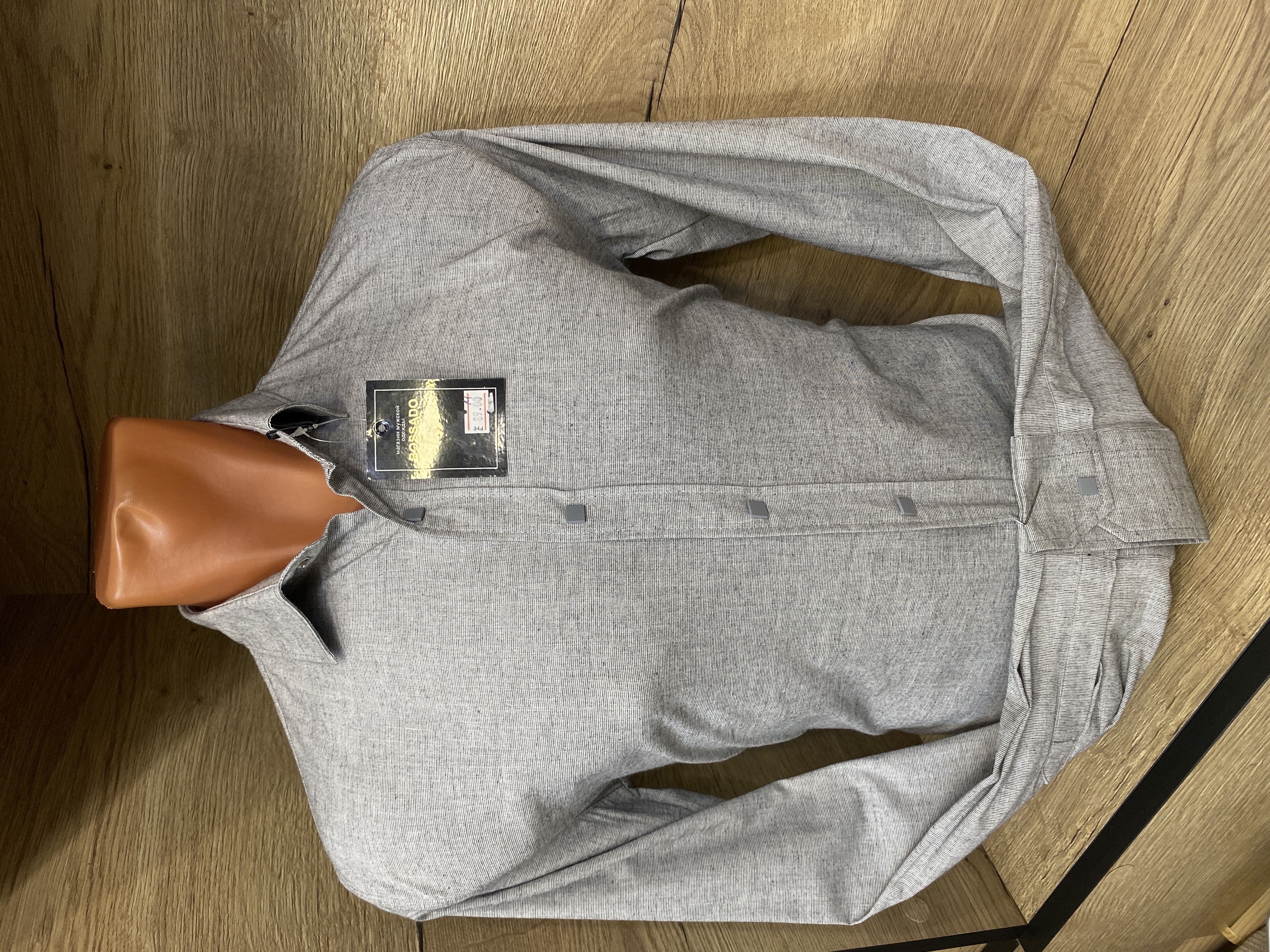 Элегантность в деталях. Эта мужская рубашка в благородном сером цвете с эффектом меланжа — идеальный выбор для тех, кто ценит современный стиль и безупречную посадку. Модель выполнена в крое Slim Fit, который аккуратно подчеркивает атлетичность фигуры, создавая четкий и мужественный силуэт.