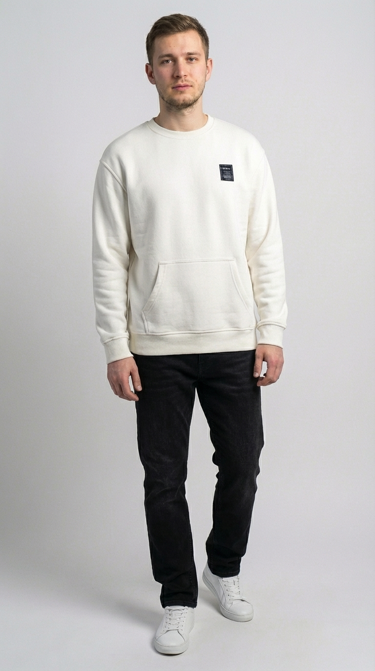 Абсолютный мастхэв для любого времени года. Этот свитшот от BOSSADO в молочно-белом оттенке – база, которая мгновенно делает образ свежим и дорогим. Модель выполнена в стиле «минимализм» с акцентным черным патчем на груди, что добавляет вещи индивидуальности, не перегружая её.