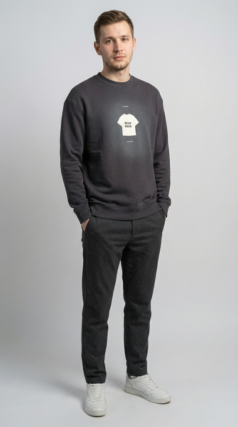 База, которая выглядит дорого. Этот графитовый свитшот – идеальное воплощение стиля Smart Casual для мужчин. Модель выполнена в глубоком темно-сером оттенке с меланжевым эффектом, который придает ткани благородную фактуру.