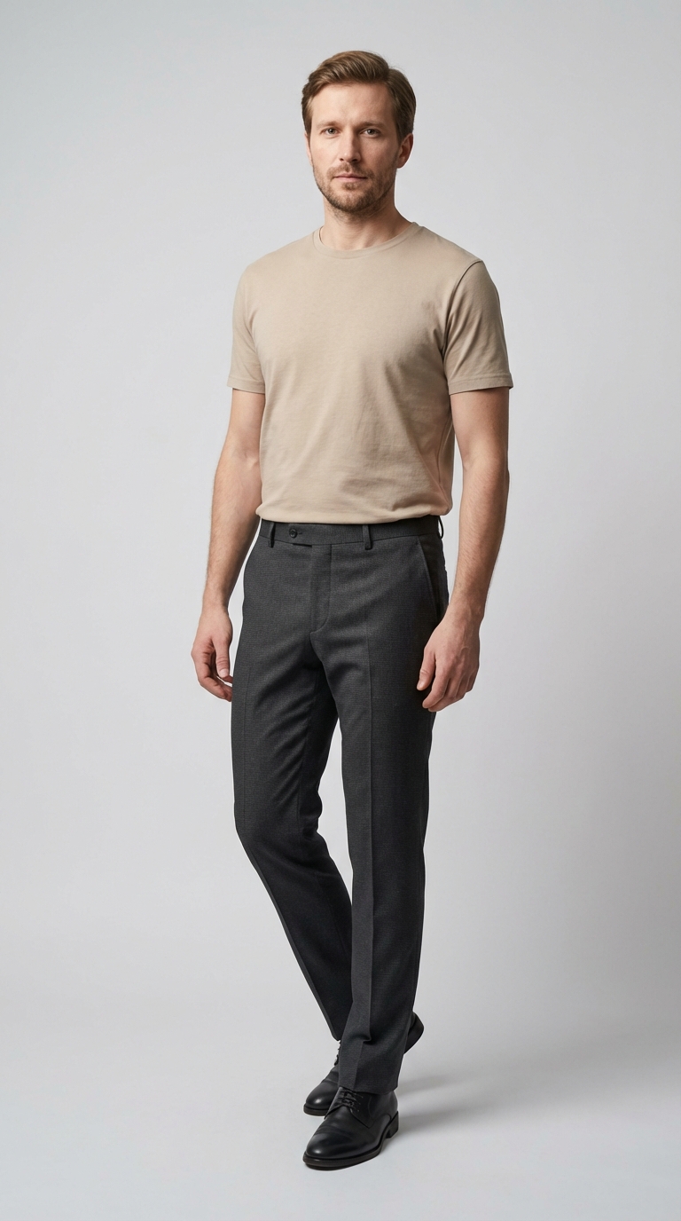 - Крой: Modern Fit / Slim Fit — аккуратная посадка по фигуре с легким сужением к низу.