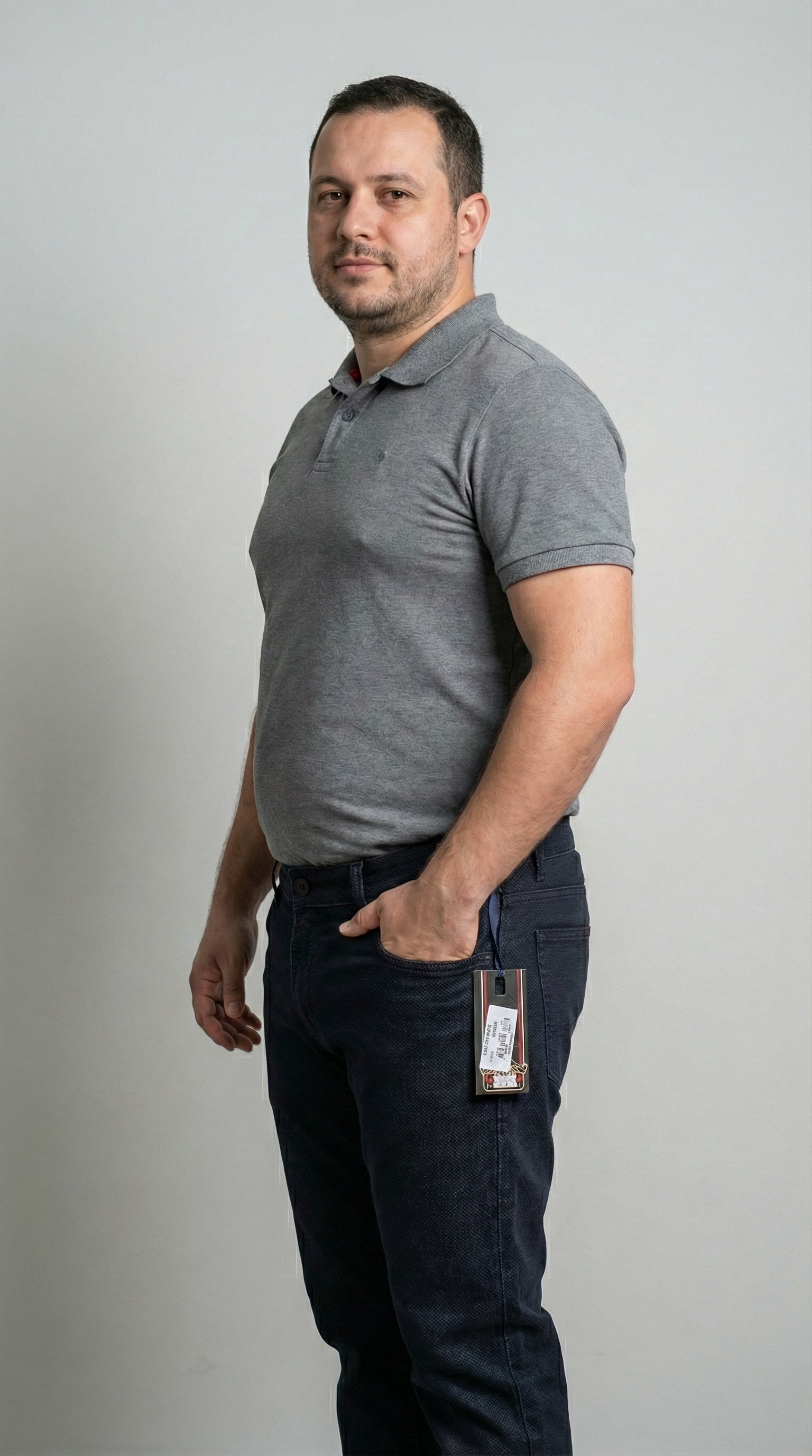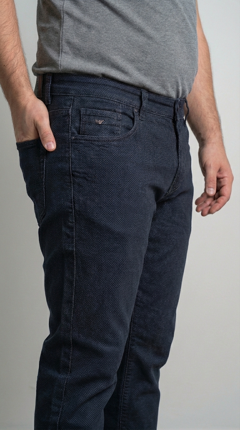 Сочетание строгости брюк и удобства денима. Эти темно-синие джинсы от BOSSADO выделяются своей уникальной фактурой с микродизайном, которая придает ткани благородный матовый вид. Модель создана для мужчин, которые ценят сдержанный стиль и хотят выглядеть солидно даже в неформальной обстановке.