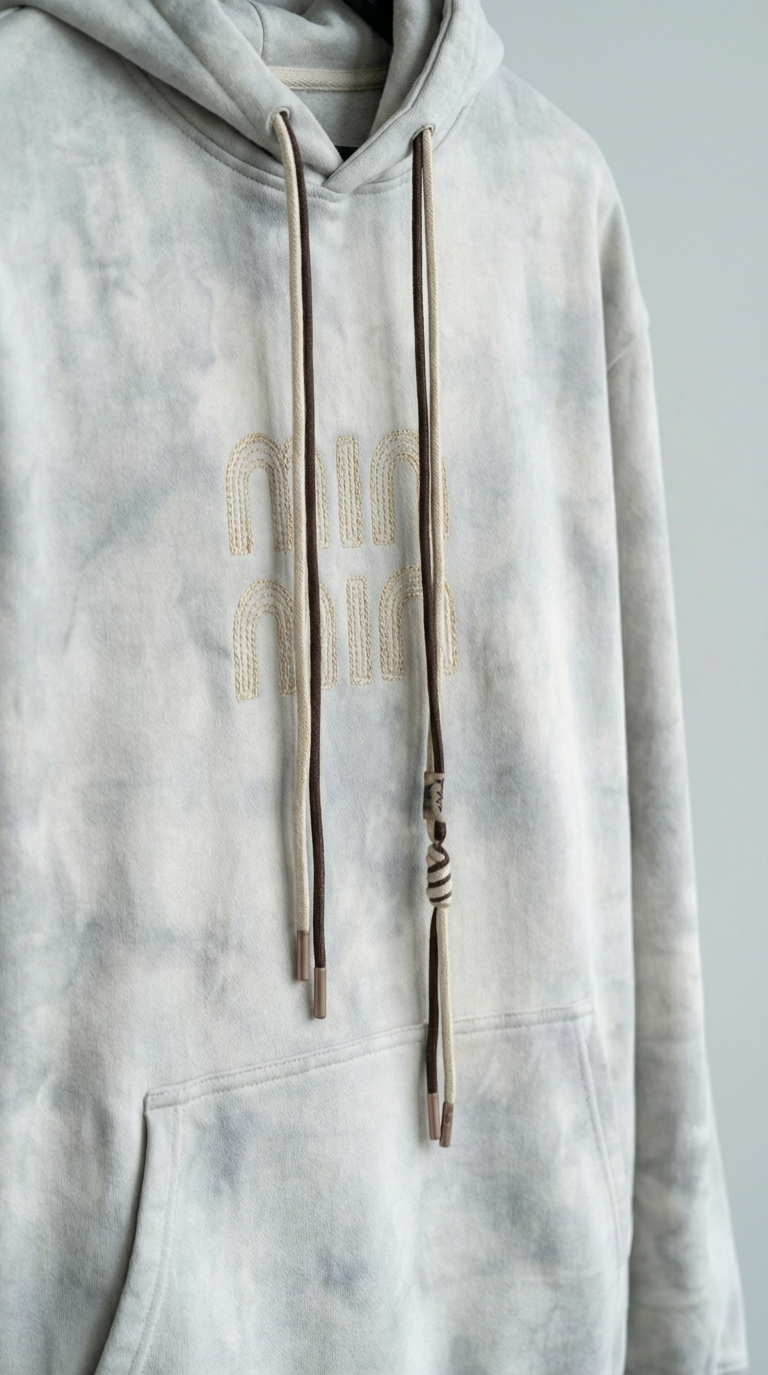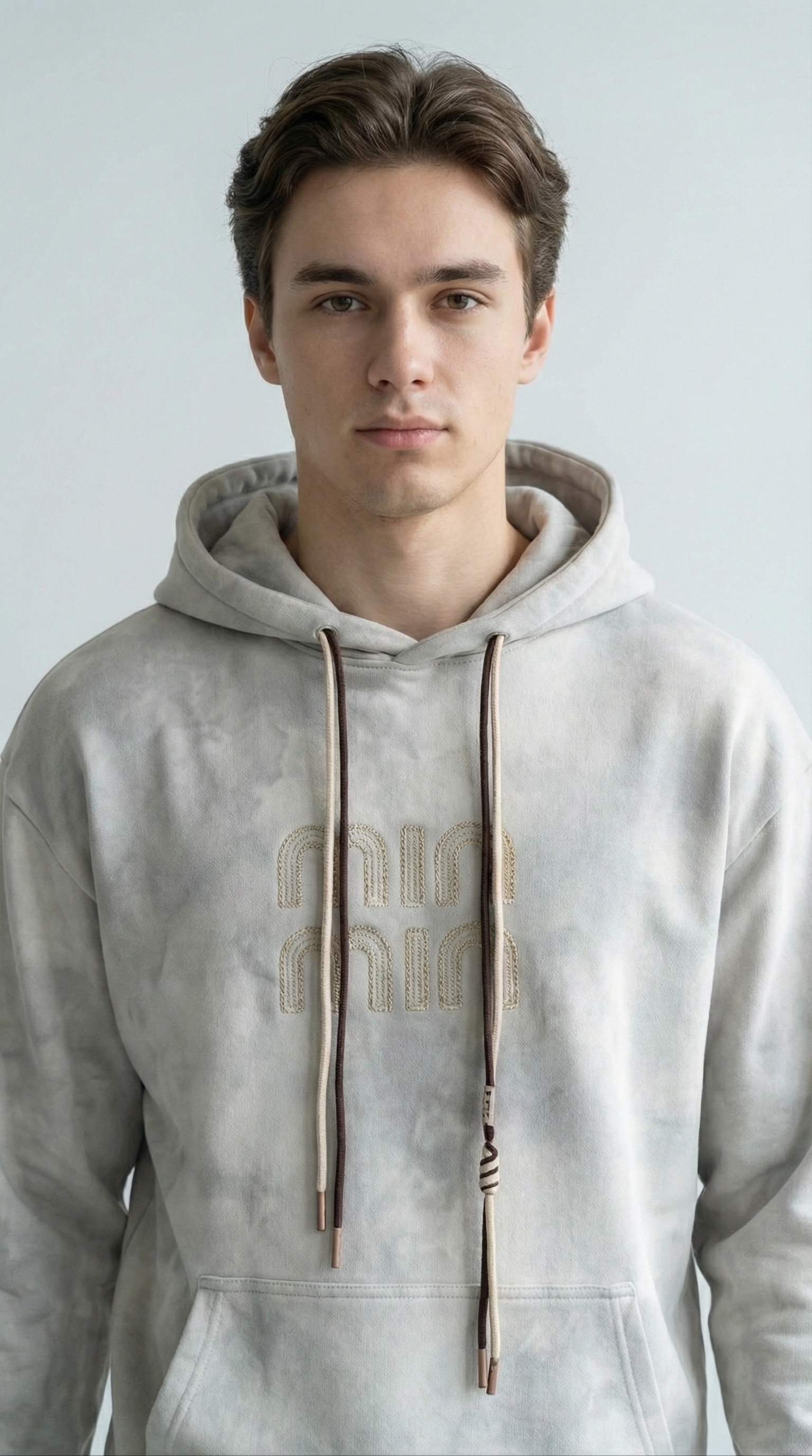 Мужское худи – светло-серый эффект «Tie-Dye» с вышивкой