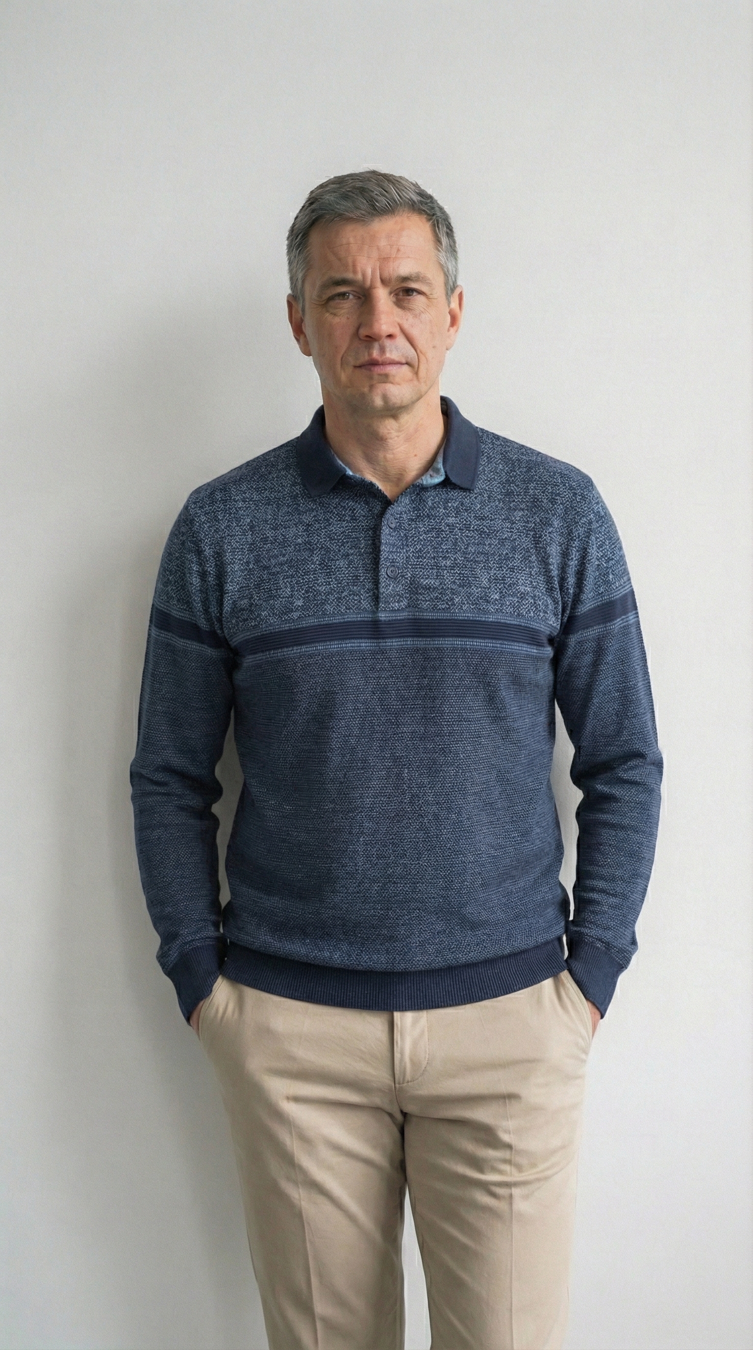 Такое дизайнерское решение визуально расширяет плечи и делает силуэт более мужественным. Мягкий воротник на пуговицах и эластичные манжеты обеспечивают комфортную посадку. Джемпер идеально подходит для повседневной носки в прохладную погоду, отлично сочетаясь с бежевыми брюками чинос или темными джинсами.